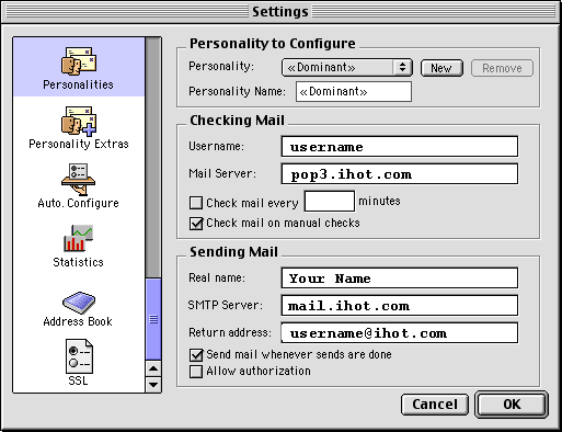 Give the New Personality a name, and enter the relevant information from your Internet Hotline or other ISP's Account Information