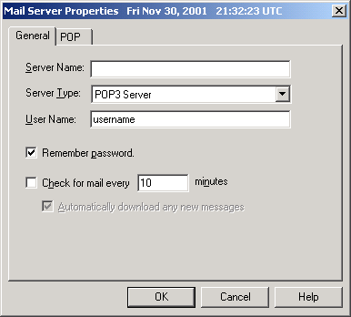 Server Type: POP3 Server