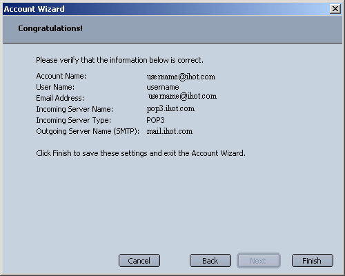 Server Name: mail.ihot.com for dial up or IHOT DSL Users only.